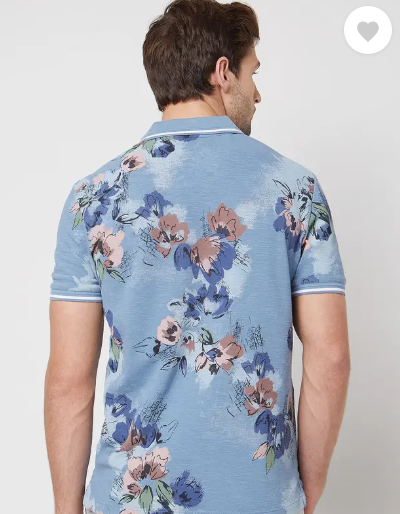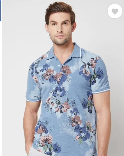 Men Floral Print Polo Neck Pure Cotton Blue T-Shirt