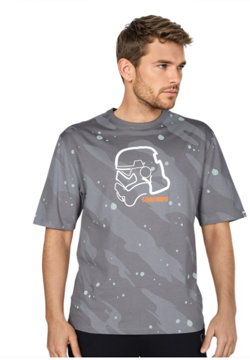 Grey & White t-shirt for men Graphic Regular length Round neck Short, Drop-shoulder sleeves Knitted