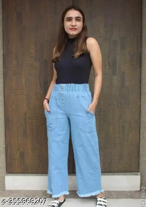 casual wear cool denim plazo for girls. size fits 26-30 waist. clean look.