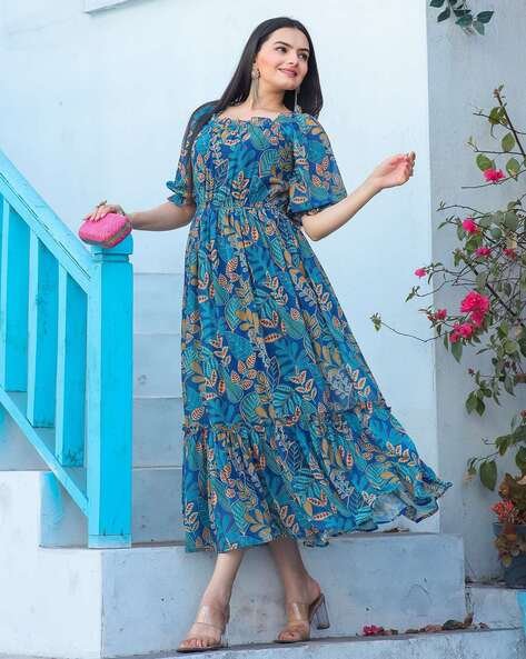Women Leaf Print Fit & Flare Dress