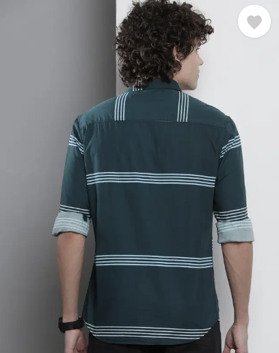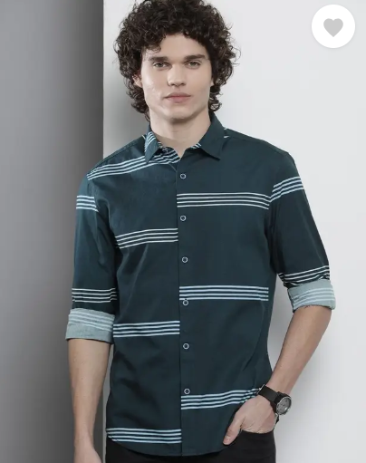 Men Regular Fit Striped Cut Away Collar Casual Shirt