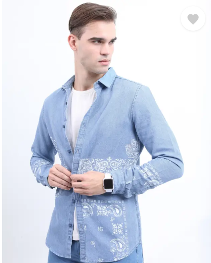 Men Slim Fit Printed Cut Away Collar Casual Shirt