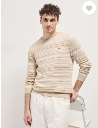 Men Striped Round Neck Pure Cotton Beige T-Shirt