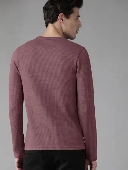 Self Design Men Purple T-Shirt