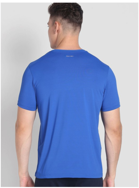 Blue printed lounge t-shirt has regular length, has a crew neck and short sleeves