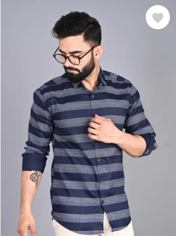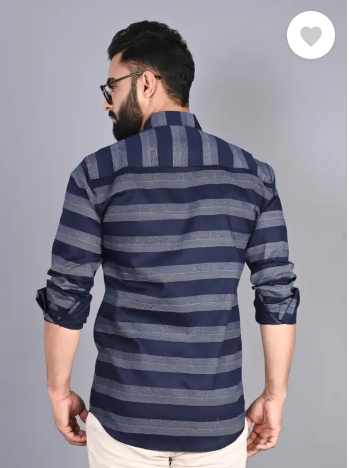 Men Slim Fit Striped Spread Collar Casual Shirt