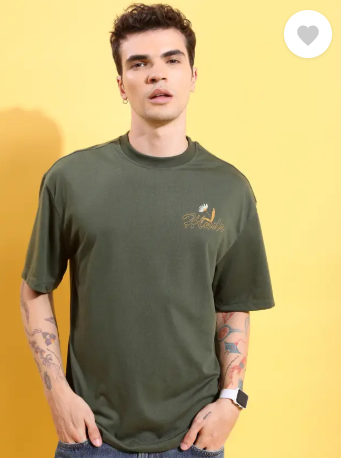 Men Printed, Typography Round Neck Cotton Blend Green T-Shirt