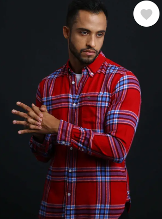Men Slim Fit Checkered Button Down Collar Casual Shirt