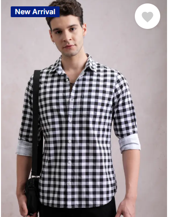 Men Slim Fit Checkered Cut Away Collar Formal Shirt