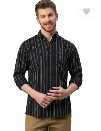 Men Slim Fit Striped Spread Collar Casual Shirt