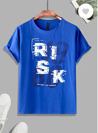Men Graphic Print Round Neck Pure Cotton Blue T-Shirt