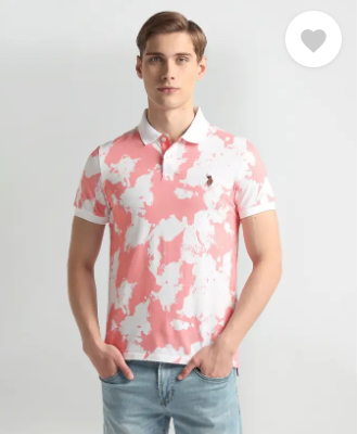 Men Printed Polo Neck Cotton Blend Orange T-Shirt