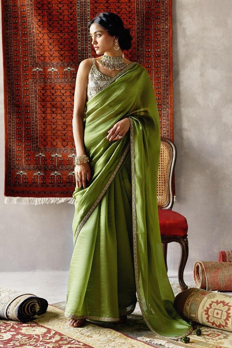• Olive green saree