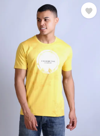 Men Printed Round Neck Cotton Blend Yellow T-Shirt