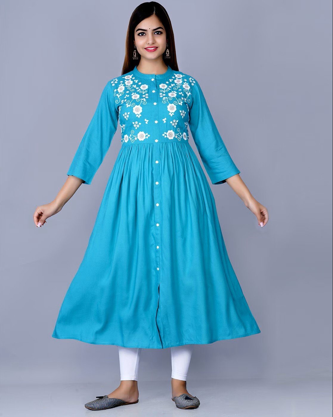 Women Embroidered Flared Kurta