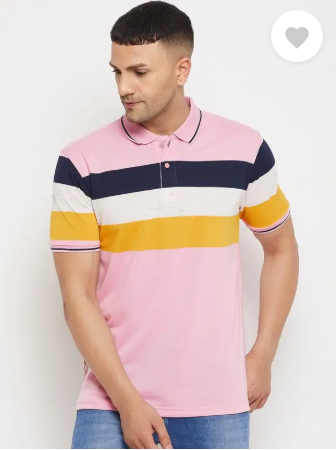Men Striped Polo Neck Polyester Pink T-Shirt