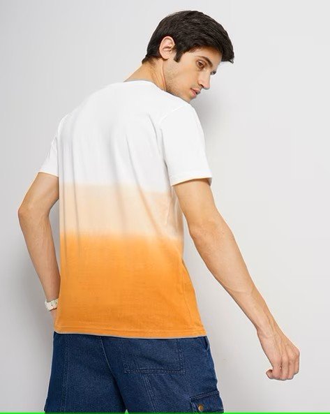 Men Ombre-Dyed Slim Fit Crew-Neck T-Shirt