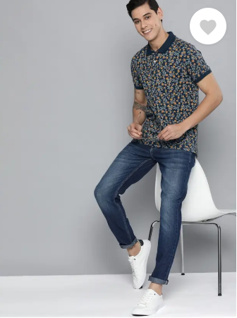 Men Printed Polo Neck Pure Cotton Dark Blue T-Shirt