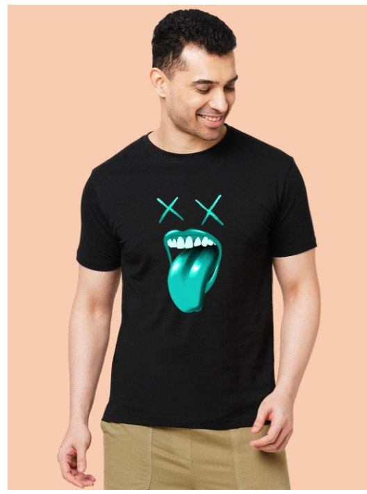 Black & Blue t-shirt for men Graphic Regular length Round neck Short sleeves Knitted