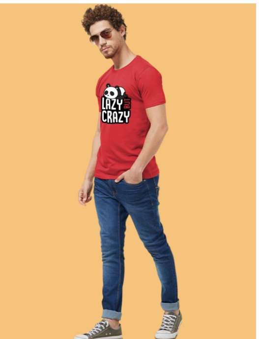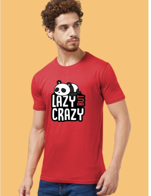 Red t-shirt for men Graphic Regular length Round neck Short sleeves Knitted