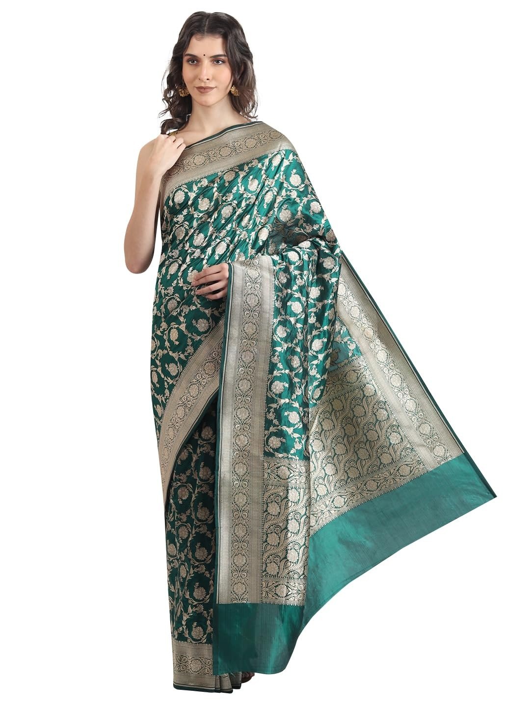 1 Pure Katan Banarasi Silk Saree (5.5 meters) 1 Unstitched Blouse Piece (1 meter)