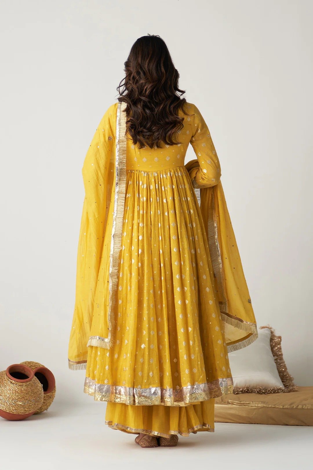 Pakeezah musturd angrakha anarkali with sharara and mukaish dupatta