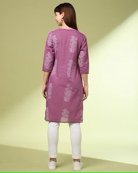 Women Floral Print Cambric Cotton Straight Kurta