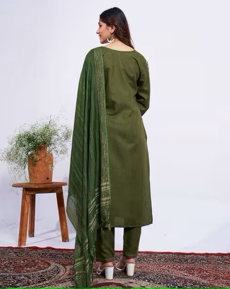 ARADHNA Women Embroidered Straight Kurta Set with Dupatta