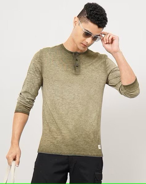 Men Tie & Dye Slim Fit Henley T-Shirt