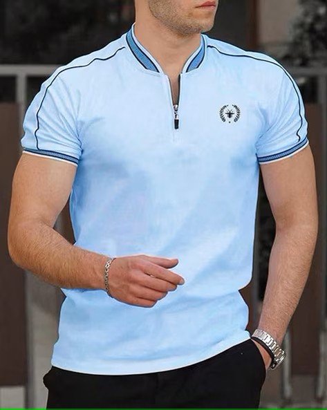 Men Regular Fit Polo T-Shirt with Spread Collar