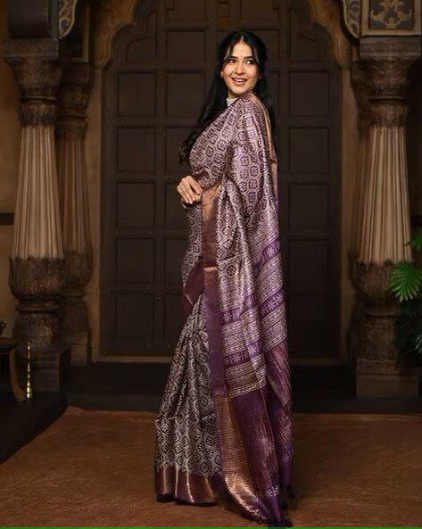 The last image gives a detailed look of the blouse piece that comes with this saree (The model is wearing a blouse from our in-house wardrobe)