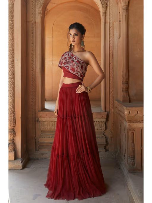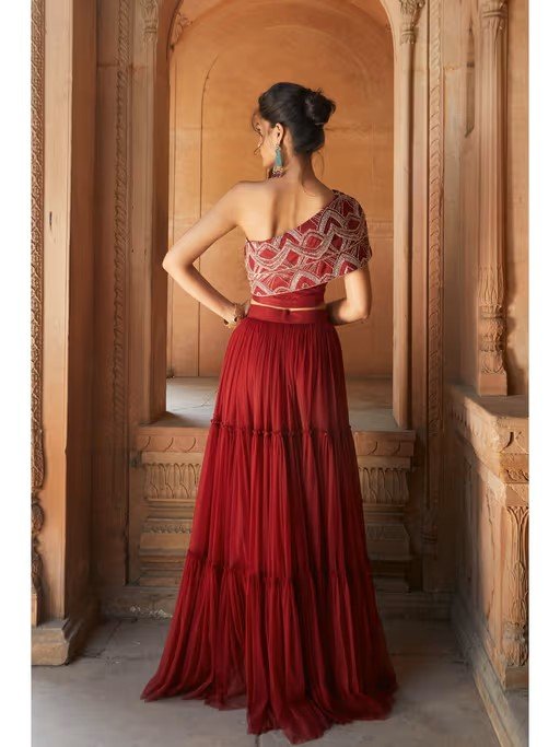 Oxblood Ethnic Skirt & Blouse (Set of 2)