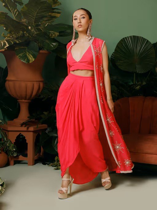 Jacket In Organza with Crepe Blouse & Drape Skirt (Set of 3)