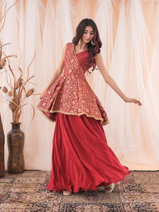 Material Used - Banarasi Brocade For Peplum Top, Crape For Lehenga. Top and Skirt with Attached Lining, Hand Embroidery Of Cut Dana Is On Top