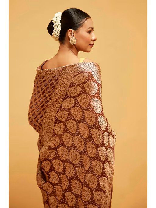 Adorn the styles specially made for you with this brown set from Suruchi Parakh. Made from high quality georgette, it features closure and woven pattern along with & design. Pair it with trendy footwear to elevate your look.