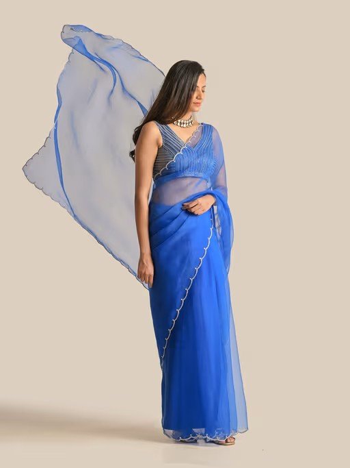 This Royal blue Organza hand Embellished blouse with Saree which has work in the border is ready to make you shine. Blouse length:13",Set of 2