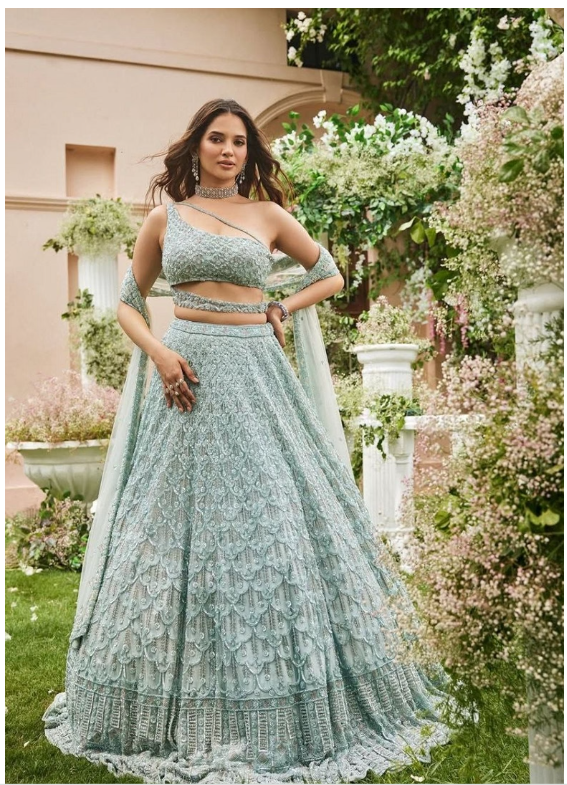 Sky Blue Sequin Embroidered Net Lehenga Set