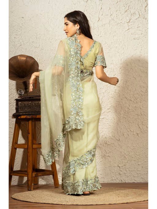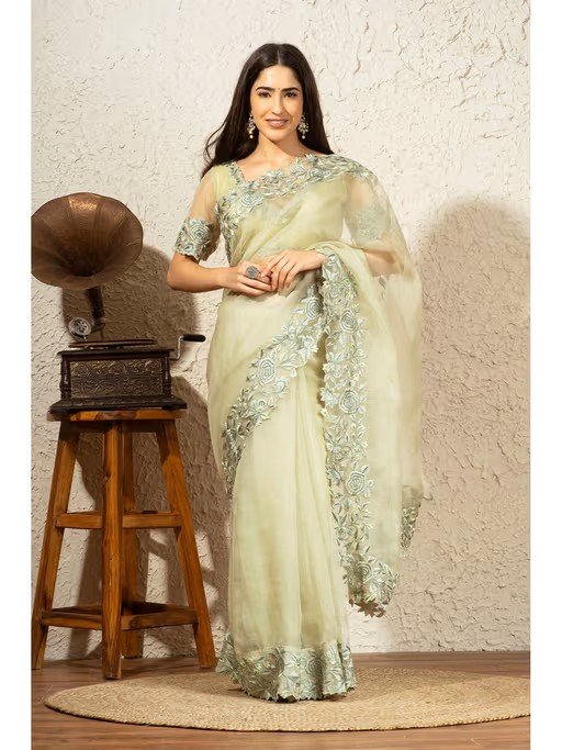 A Saree With Mesmerizing Embroidery And Made From Pure Organza Silk.
