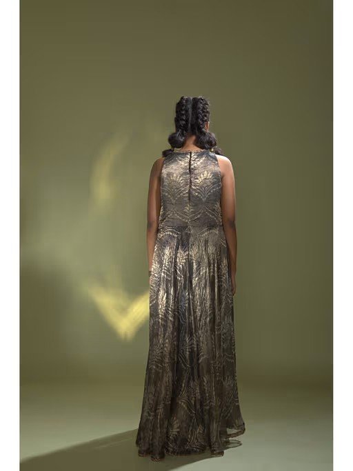 This Elegant Set Features An Asymmetrical Kurta And Matching Pants, Crafted From Deep Blue Printed Banaras Tissue Silk. The Kurta Has A High-Low Hemline With Delicate Golden Beads Embroidery Along The Edges. The Matching Pants Provide A Comfortable Fit.