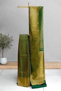 Dark Green Color Kanchipuram Brocade Saree, Golden Zari Work Body with Border.
