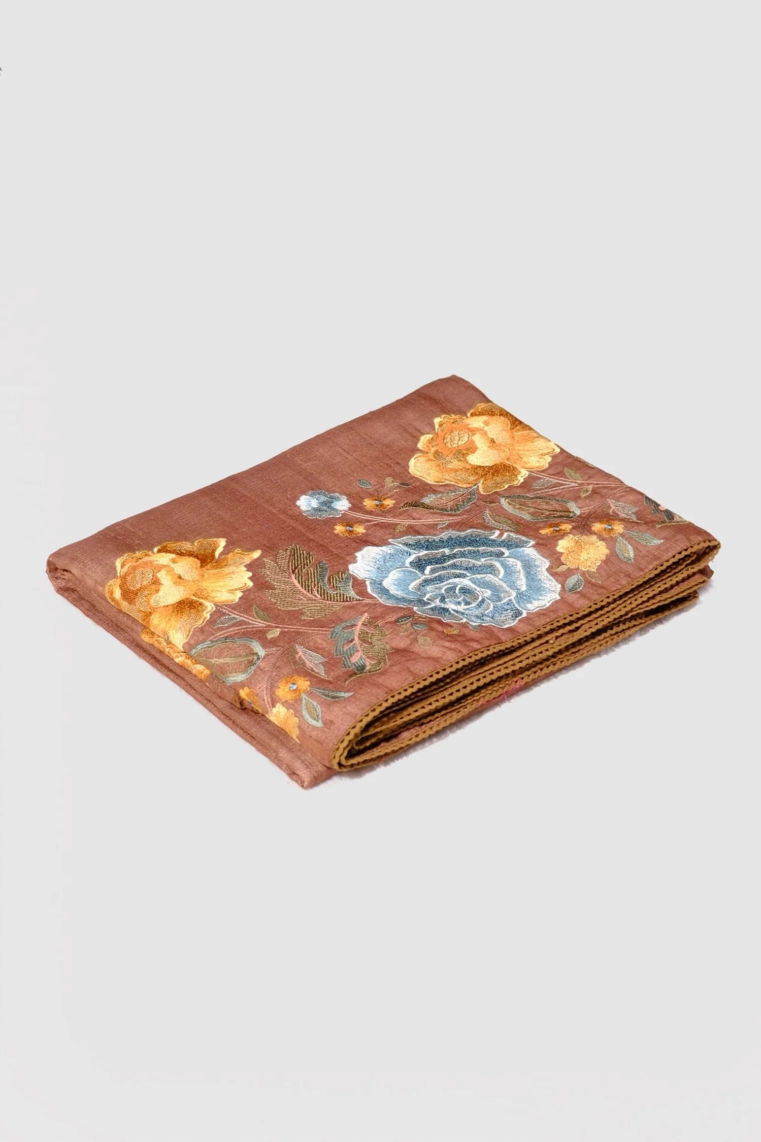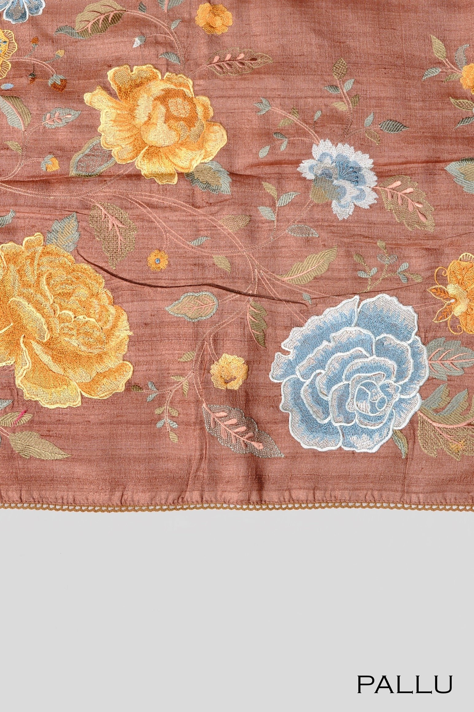 Pallu :Multi color floral machine embroidery with crosia lace border.