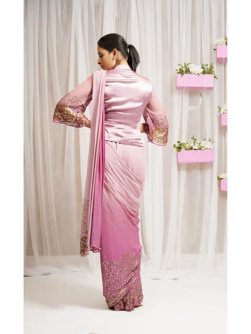 Pink Candy Hand Embroidered & Saree with Stitched Blouse
