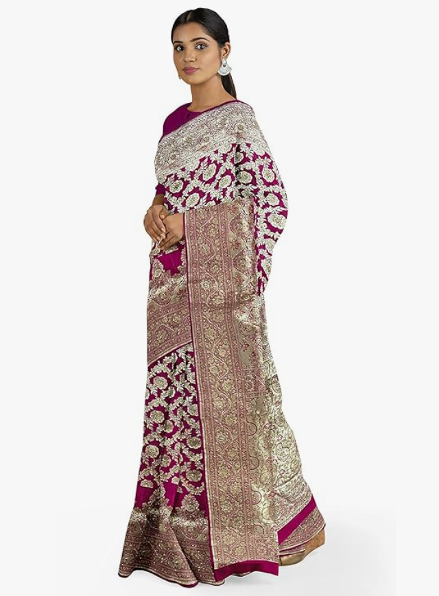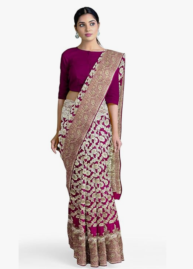 HerClozet Women's Banarasi Golden Zari with Swarovski Work Heavy Silk Saree-6.3 Mtr(Pink;Golden)