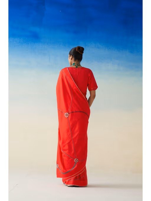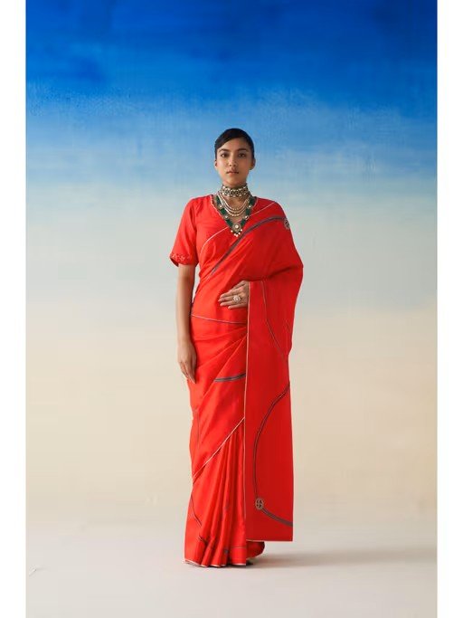 Unveil The Epitome Of Elegance with Our Majestic Red Silk Embroidered Saree, Eloquently Designed To Make You The Centre Of Attention At Any Event. Crafted From The Finest Silk, This Saree Glistens with A Luxurious Sheen and Is Adorned with Intricate Embroidery That Showcases Impeccable Craftsmanship. Accompanying This Masterpiece Is An Organic Cotton Stitched Petticoat That Offers Not Only Superior Comfort But Also An Eco-Conscious Choice. ( Blouse Is Not The Part Of This Saree, It Is Used Only for Photo Shoot Purpose )