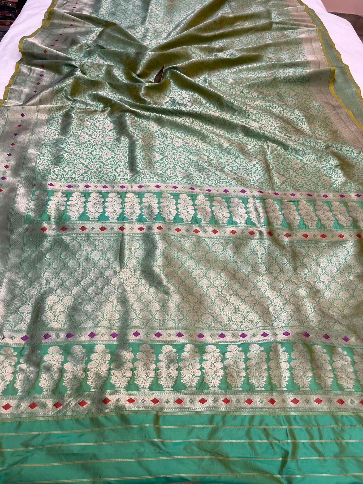 Sea Green Pure Katan silk Handloom Banarasi Saree