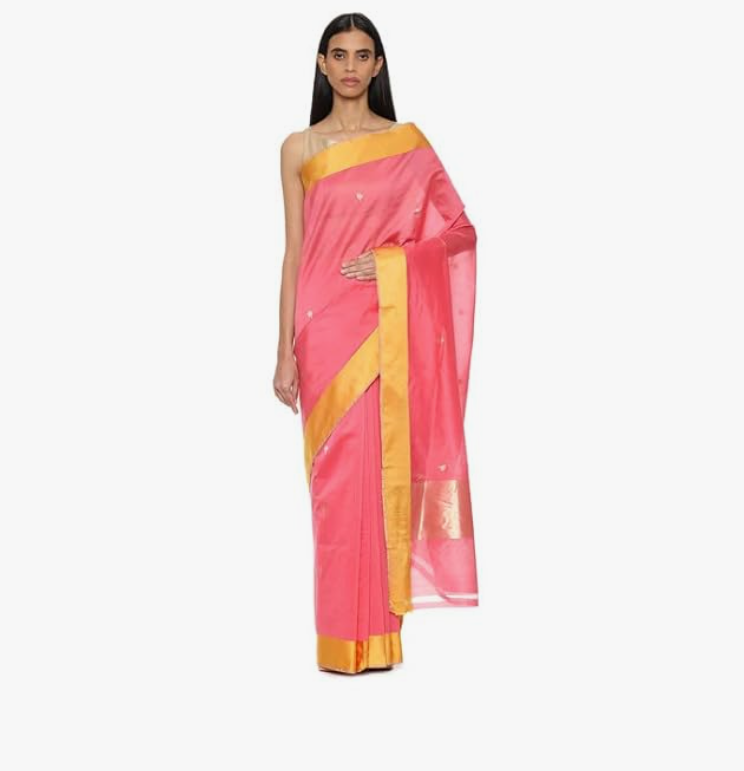 Satya Paul Pink Cotton Silk Printed Woven Saree with Blouse piece