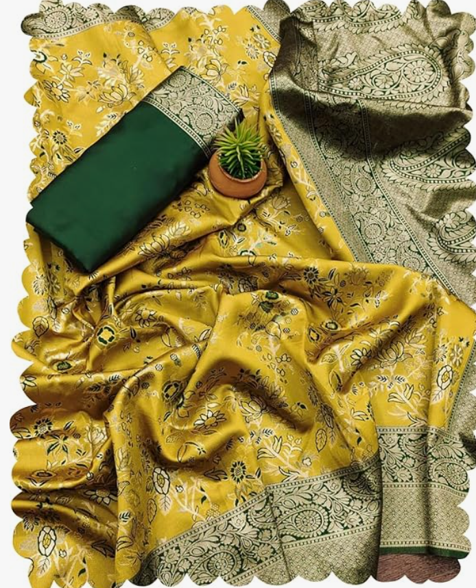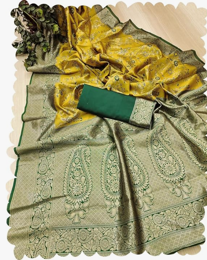 Women's Pure Kanjivram Original Silk Rajwadi Jacqurad Gold Jari Silk Wewing Sarees With Blouses Piecs