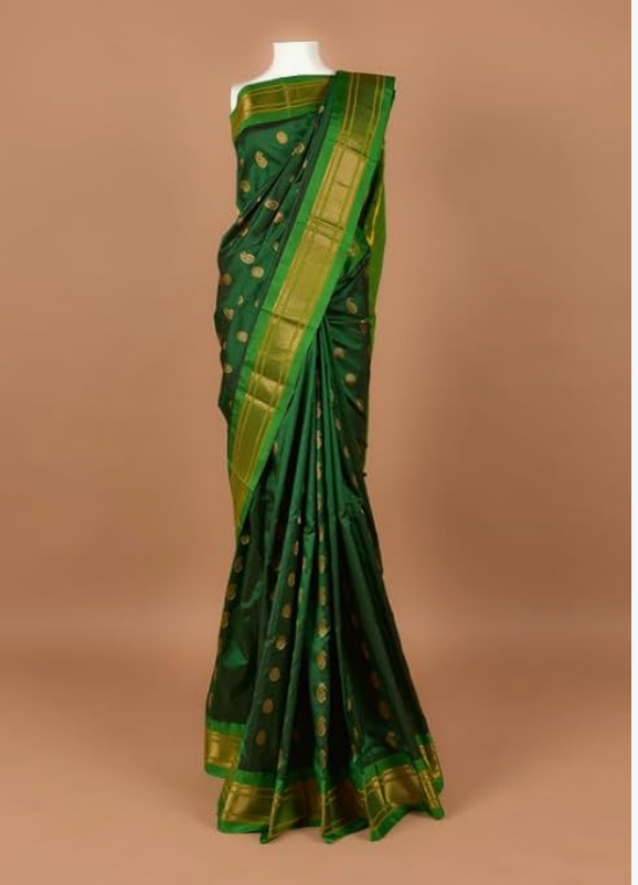 PaithaniShilp Green Aarpar Paithani Saree, Perfect For Festive Occasions, Weddings, And Parties – Soft Fabric, Comfortable Fit Saree (Green)