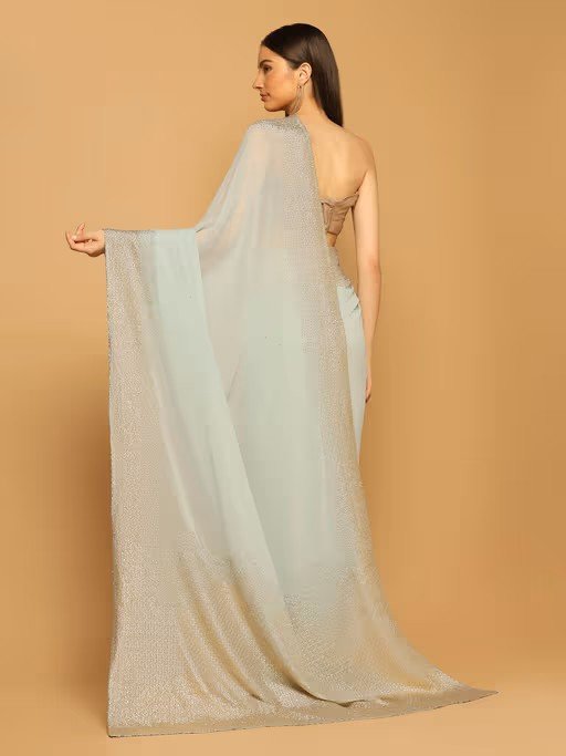 Powder Blue Sequins Embroidered Saree
