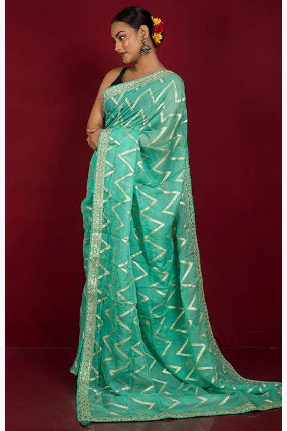 India Women's Designer Organza Georgette Zardozi Saree in Amaranth with Blouse Piece